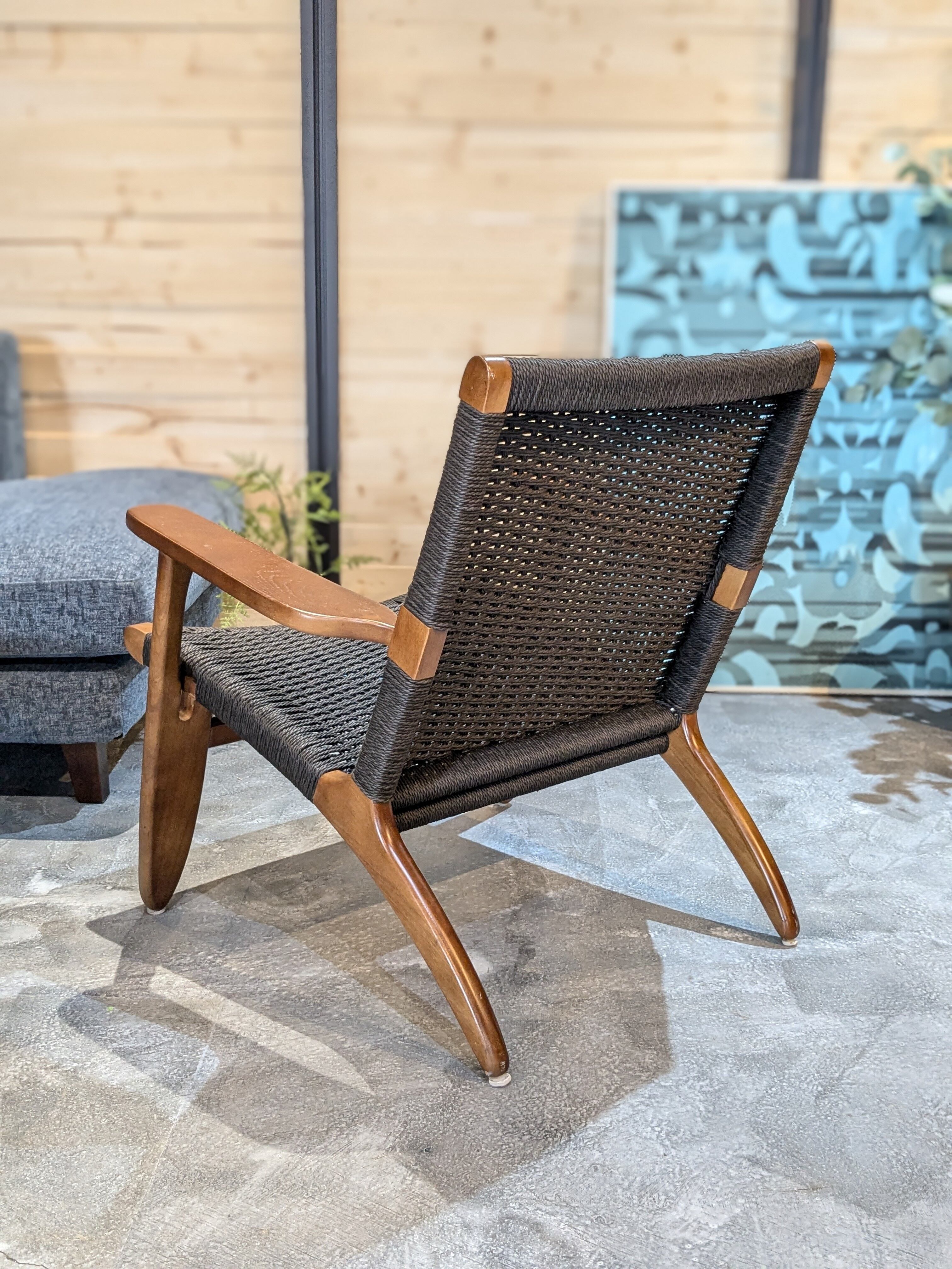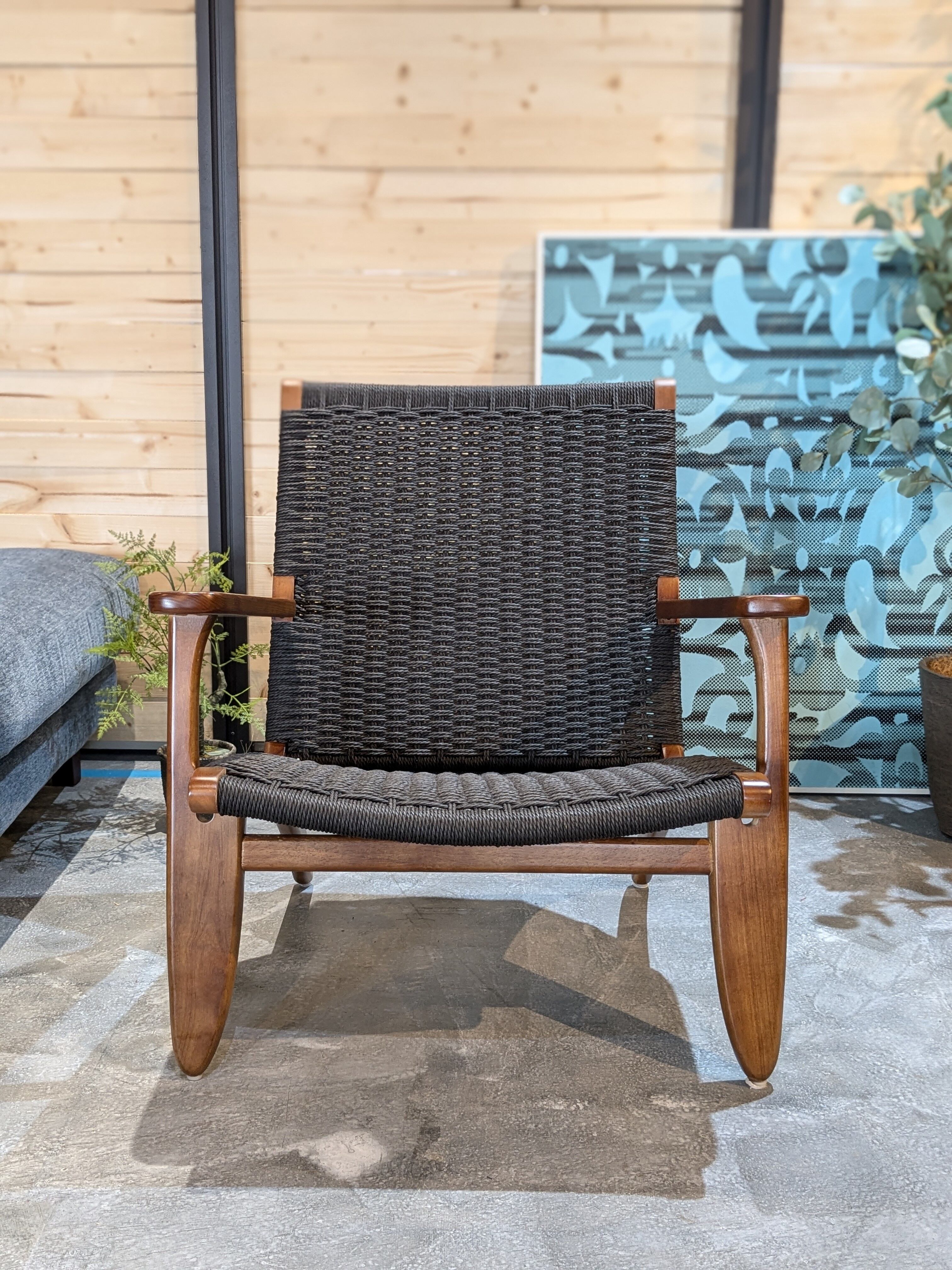 ゆったりとした背もたれと広めの座面、そしてナチュラルなペーパーコードによる編み込みが特徴。